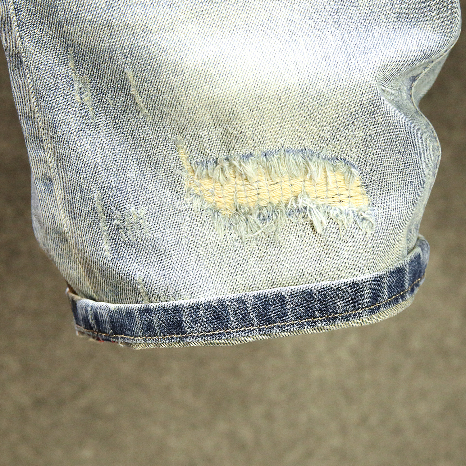 子男秋 直筒深蓝宽松休闲阔腿老爹长裤 马登工装 复古水洗丹宁牛仔裤