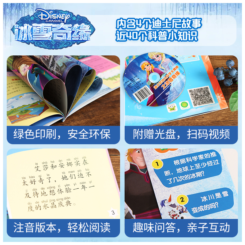 安娜艾莎公主故事书3 有声书迪士尼幼儿科学大揭儿童秘绘本拼音版 6岁睡前故事漫画书幼儿园中班大班 全4册 QHL冰雪奇缘故事书注音版