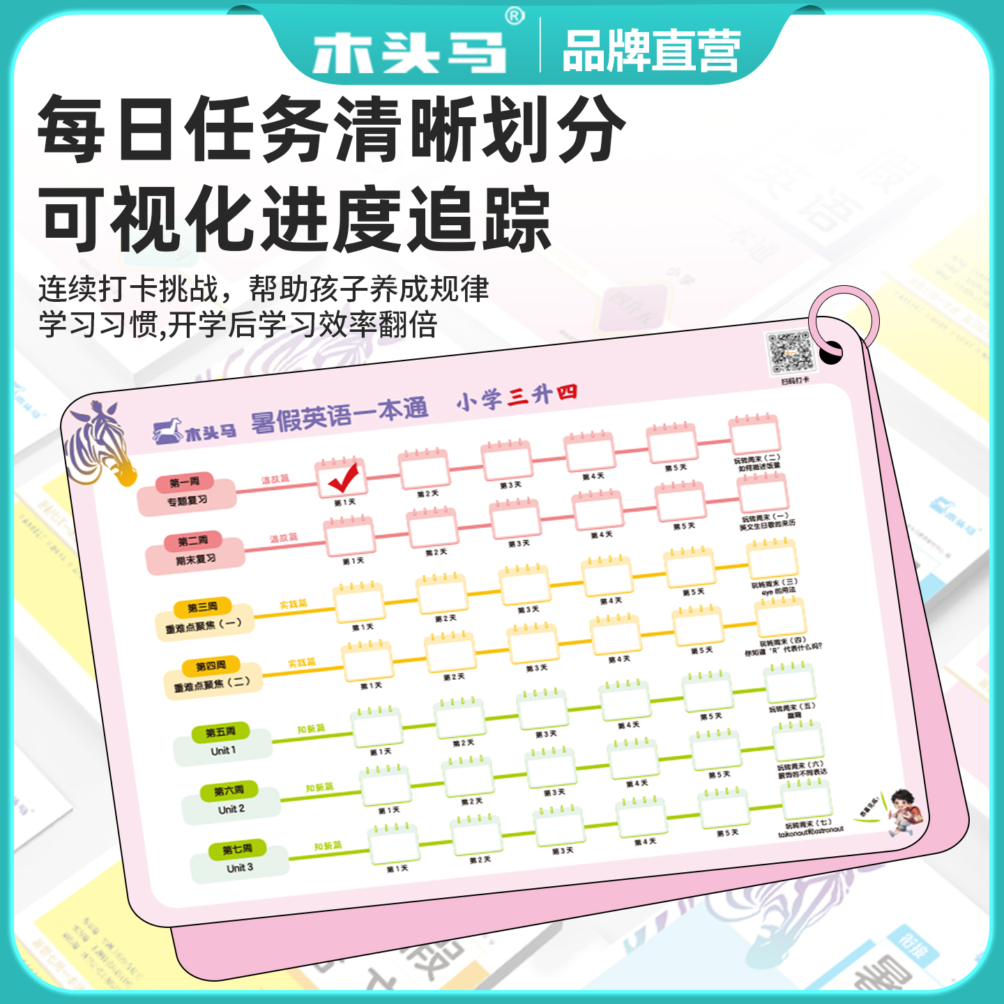 暑假衔接训练 语文数学英语 全国通用人教版 练习 暑假作业本每日一练 25秋暑假一本通 1升2升3升4升5升6 木头马