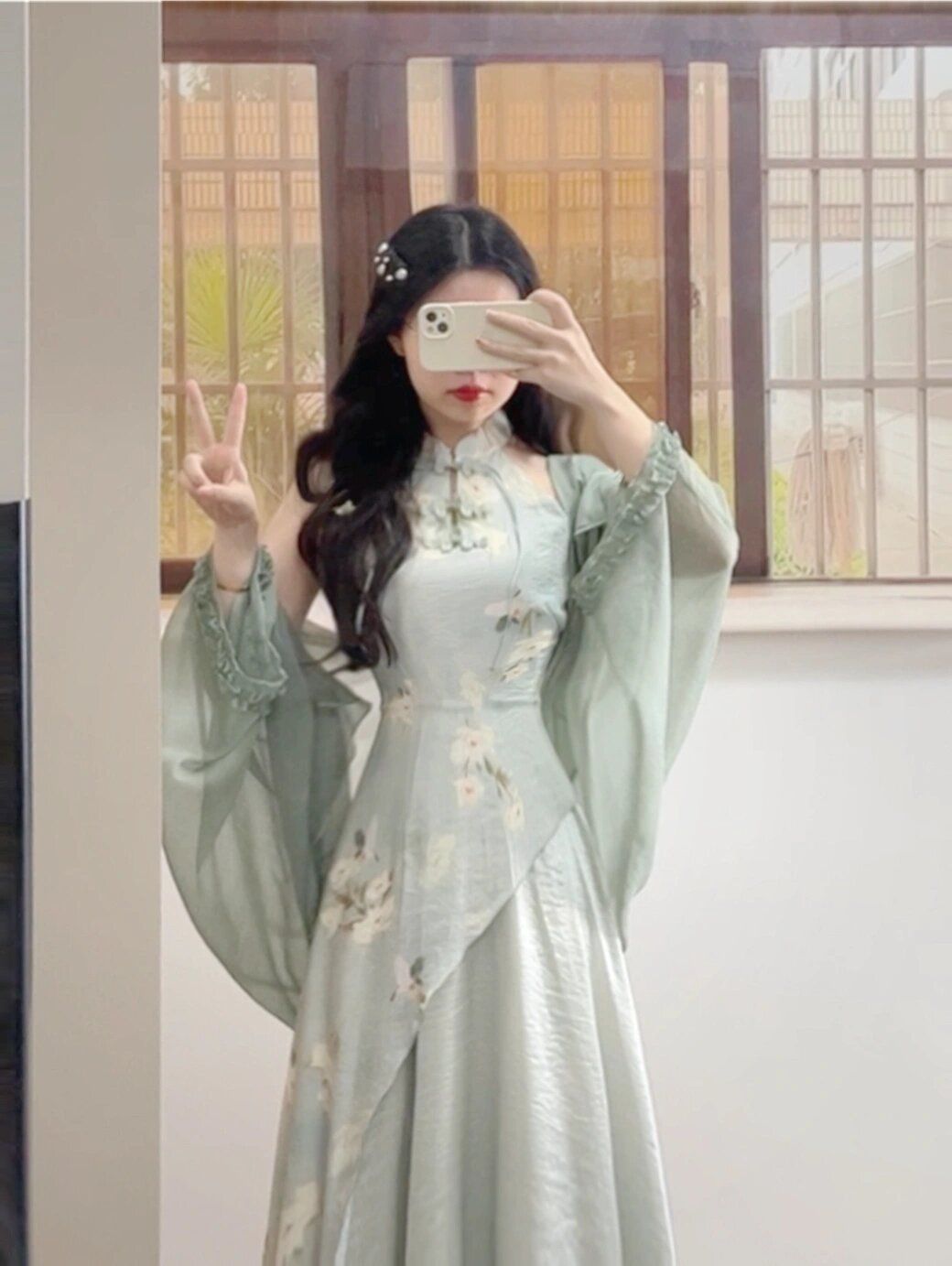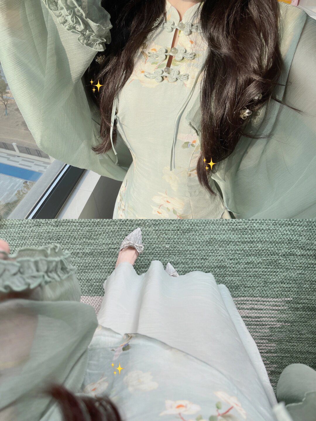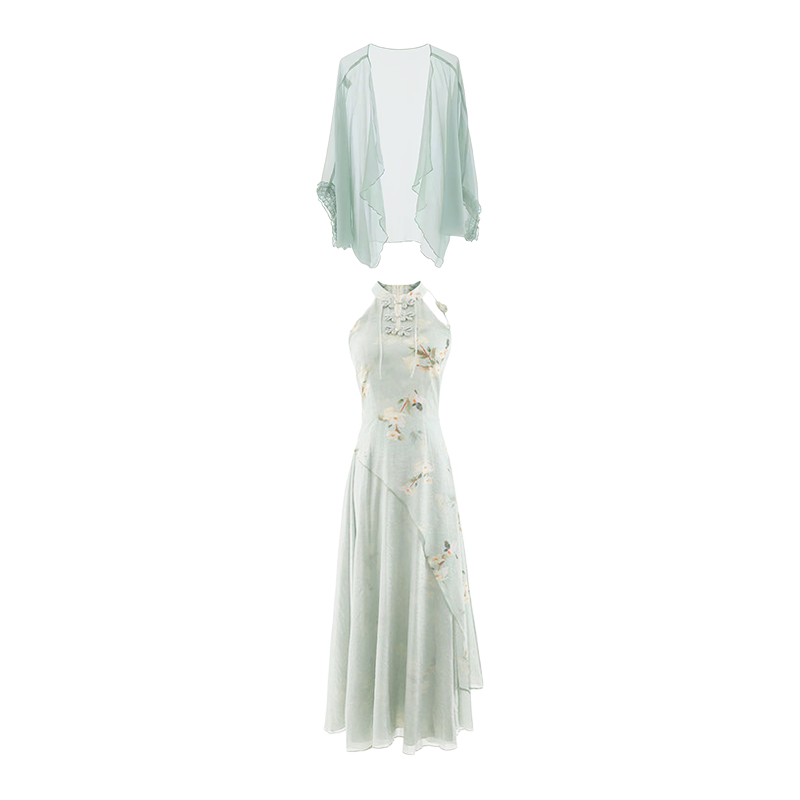高级感漂亮防晒衣挂脖改良旗袍连衣裙子 女夏季 新中式 国风复古套装