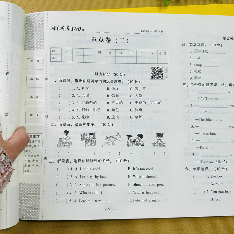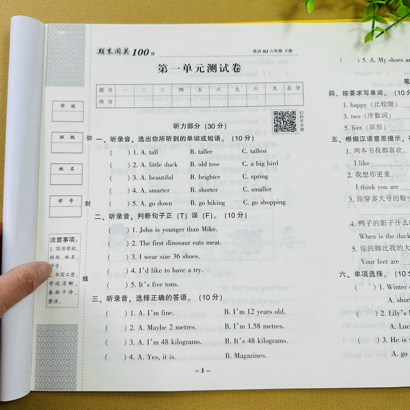 笔试卷扫码 卷期中期末卷专项练习卷听力卷 语音6下英语期末闯关试卷普通重点测试卷 小学六年级下册英语期末试卷同步单元 人教PEP版