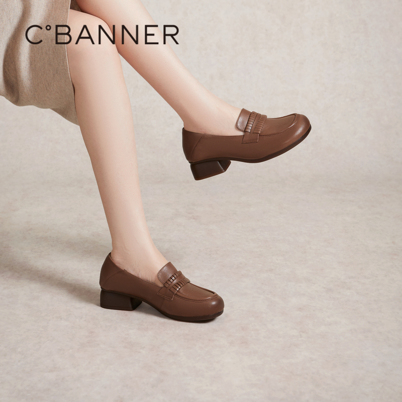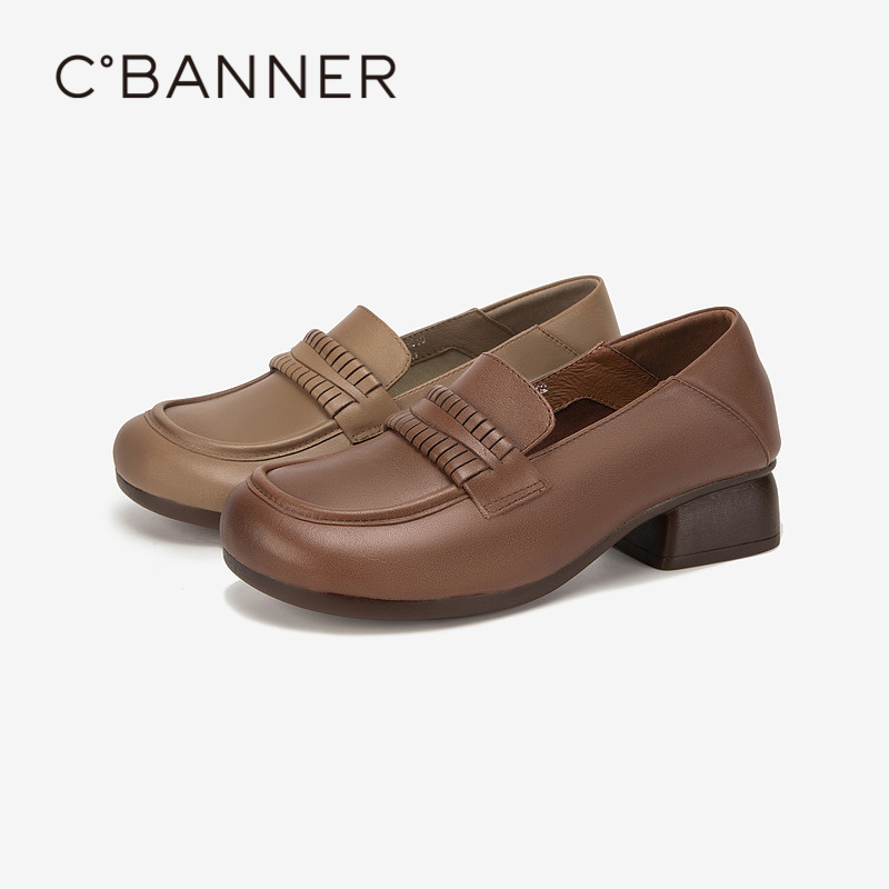 古与新 豆豆鞋 千百度中跟复古粗跟乐福鞋 新款 真皮 女秋季