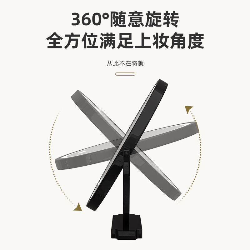 led带灯化妆镜台式 桌面梳妆台梳妆镜宿舍卧室可旋转补光充电镜子
