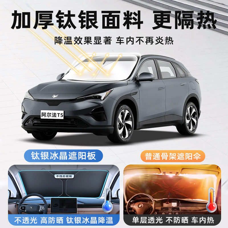 25款 极狐阿尔法T5汽车防晒隔热遮阳板前挡风玻璃罩伞帘挡遮光用品