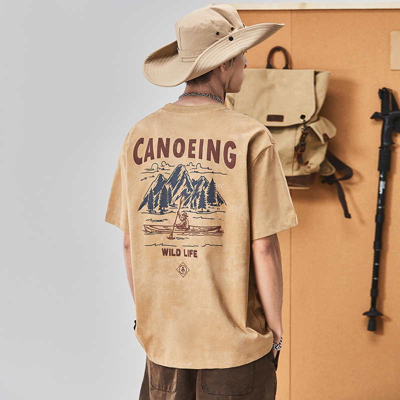 宽松休闲潮牌半袖 ALLIN t恤男夏季 山水字母印花短袖 情侣上衣 美式