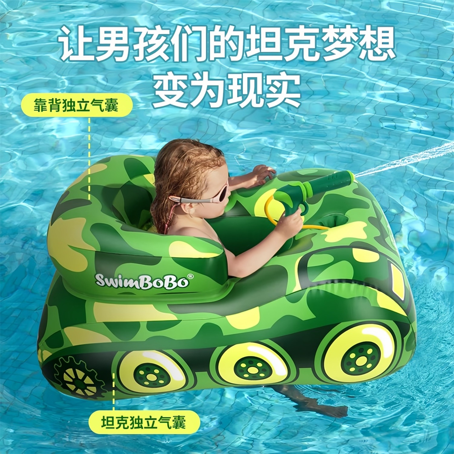 SWIMBOBO儿童游泳圈坐圈充气船泳池漂浮喷水坦克防侧翻水上玩具