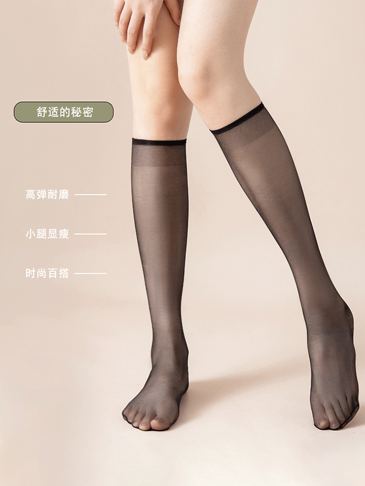 小腿丝袜子超薄款 水晶丝隐形透明高筒长筒中筒袜女防勾丝防滑 夏季