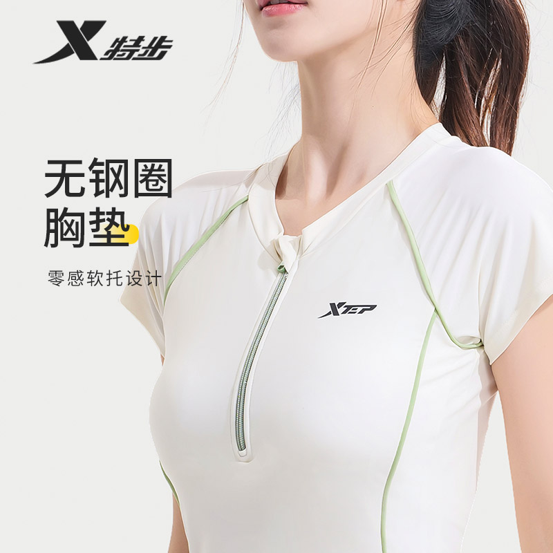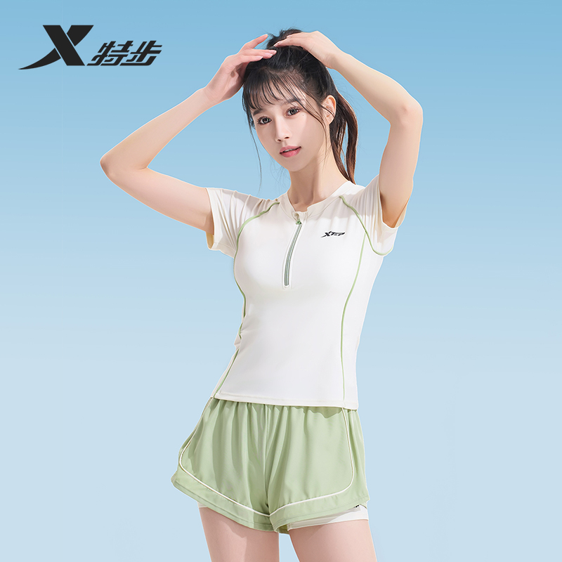 遮肚显瘦高腰清纯撞色温泉泳装 分体裙式 2024年新款 特步泳衣女女款