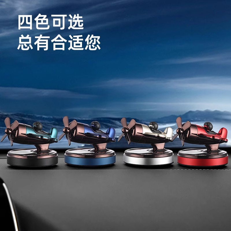 太阳能车载香水汽车内香薰旋转战斗飞机装 除味高档摆件 饰用品男士