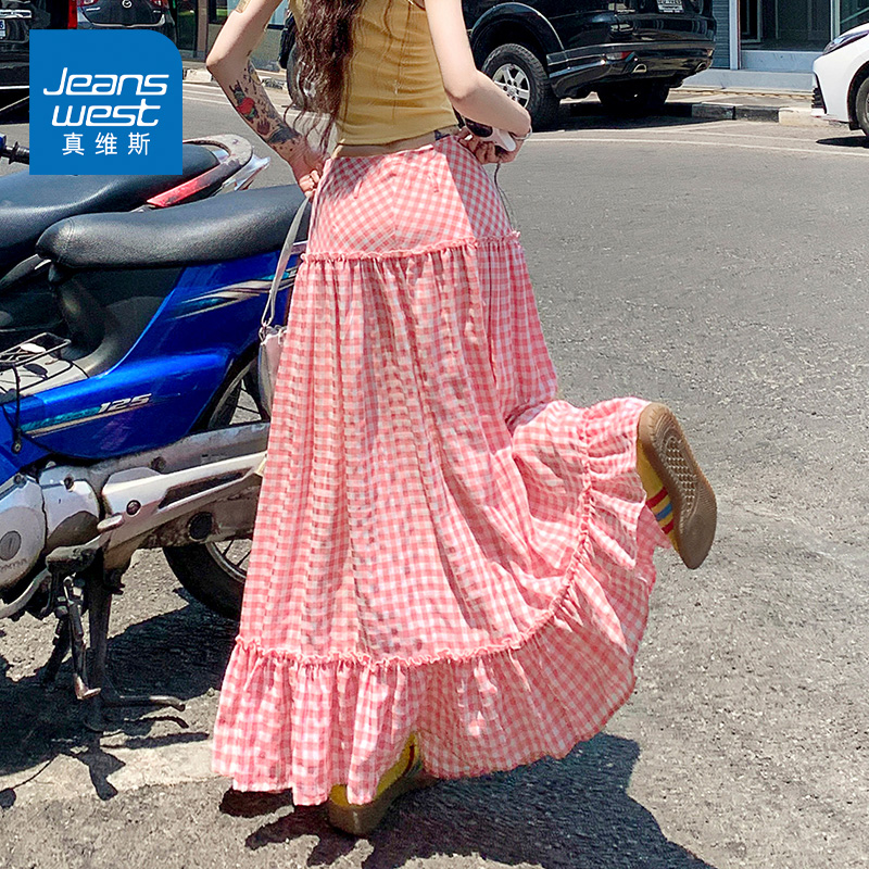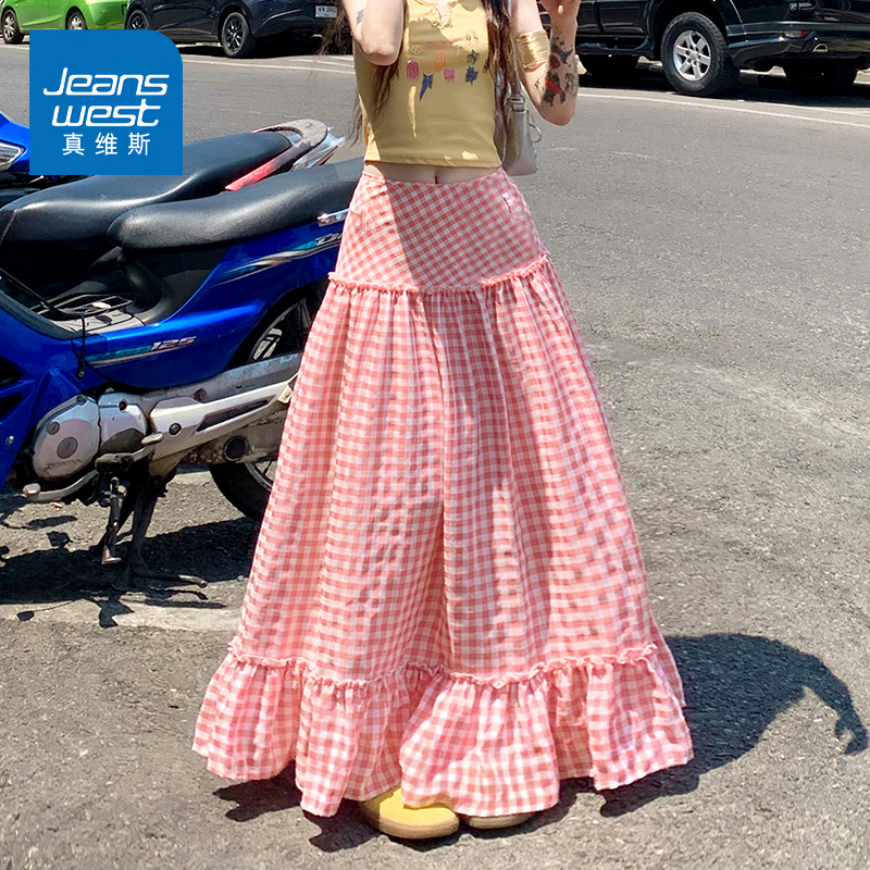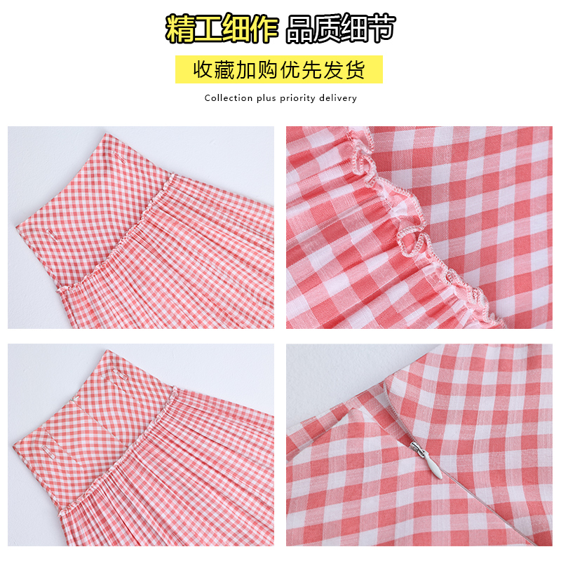 新款 ...裙子女2025秋季 格纹木耳边拼接半身裙498077 and niko