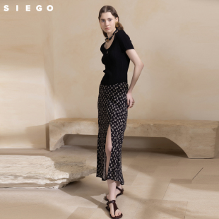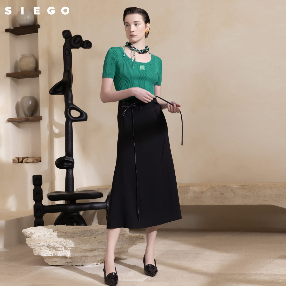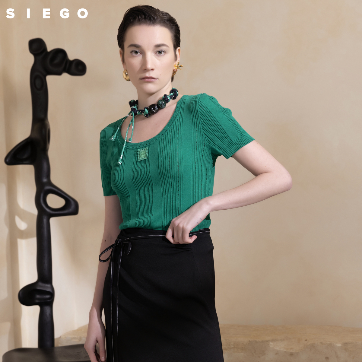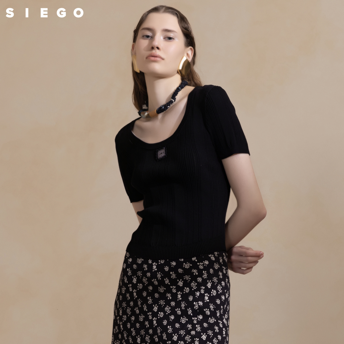 Siego西蔻摩登复古镂空花边绣大圆领短袖 64437302 针织毛衫