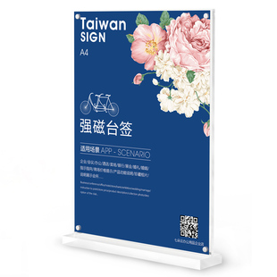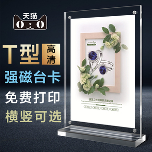 亚克力台卡A4展示牌A5强磁台签黑底座A6双面透明会议牌10 20桌牌广告摆台6寸价格台签架桌面磁吸