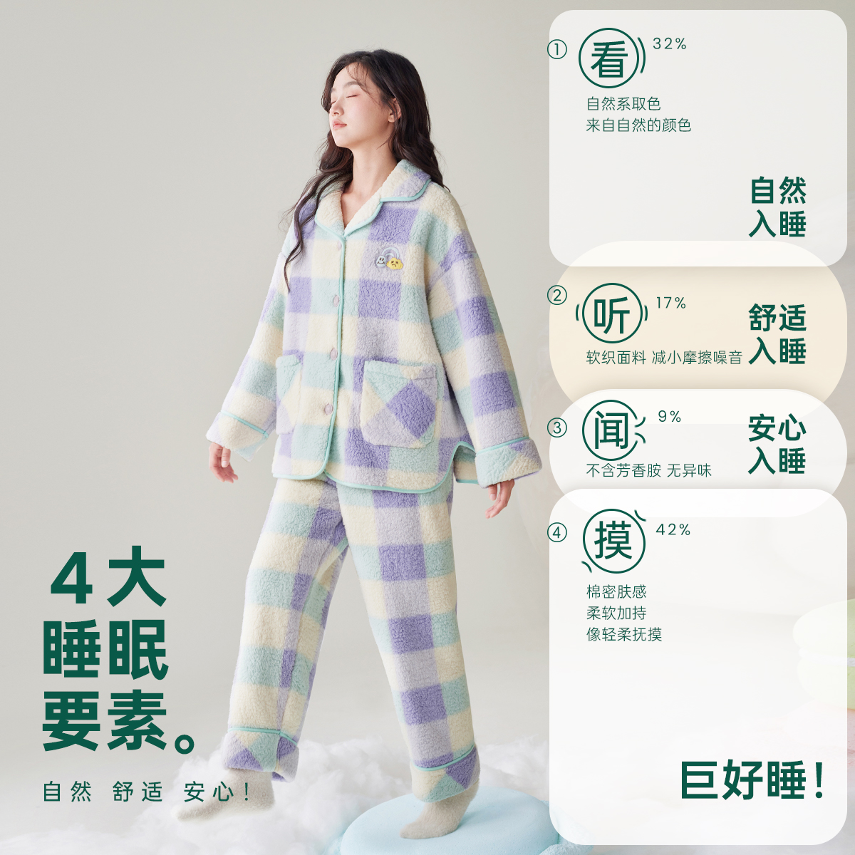 维密宅度假系列奶舒绒睡衣轻柔抗静电保暖家居服套装 女可外穿