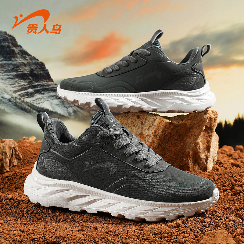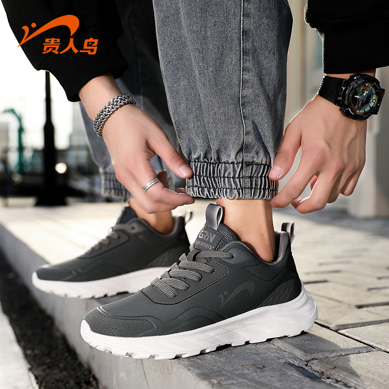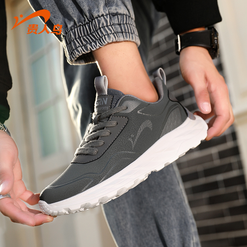 皮面防泼水爸爸减震网面休闲鞋 特步跑步鞋 黑色运动鞋 秋冬新款 男鞋