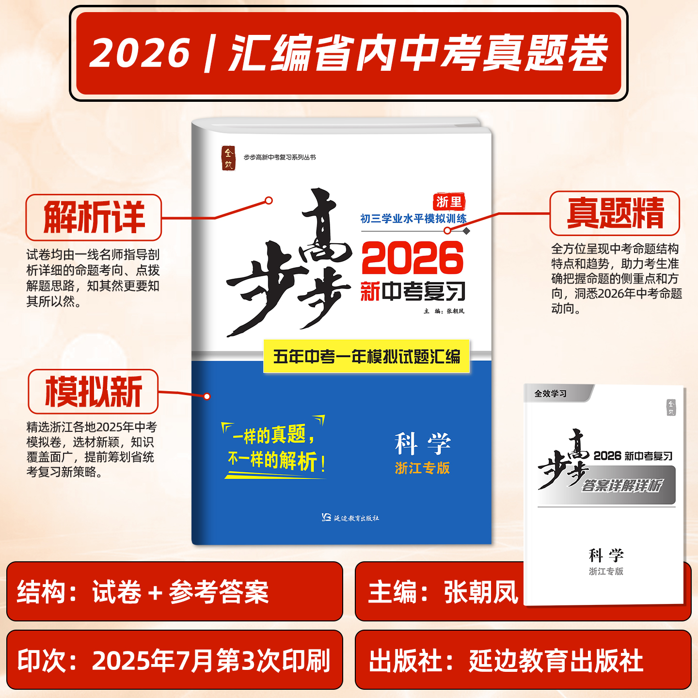2026春全效官方步步高系列中考总复习科学 试题研究历年真题模拟试卷题必刷题汇编中考总复习模拟真题含赠答案详解详析 浙江专版