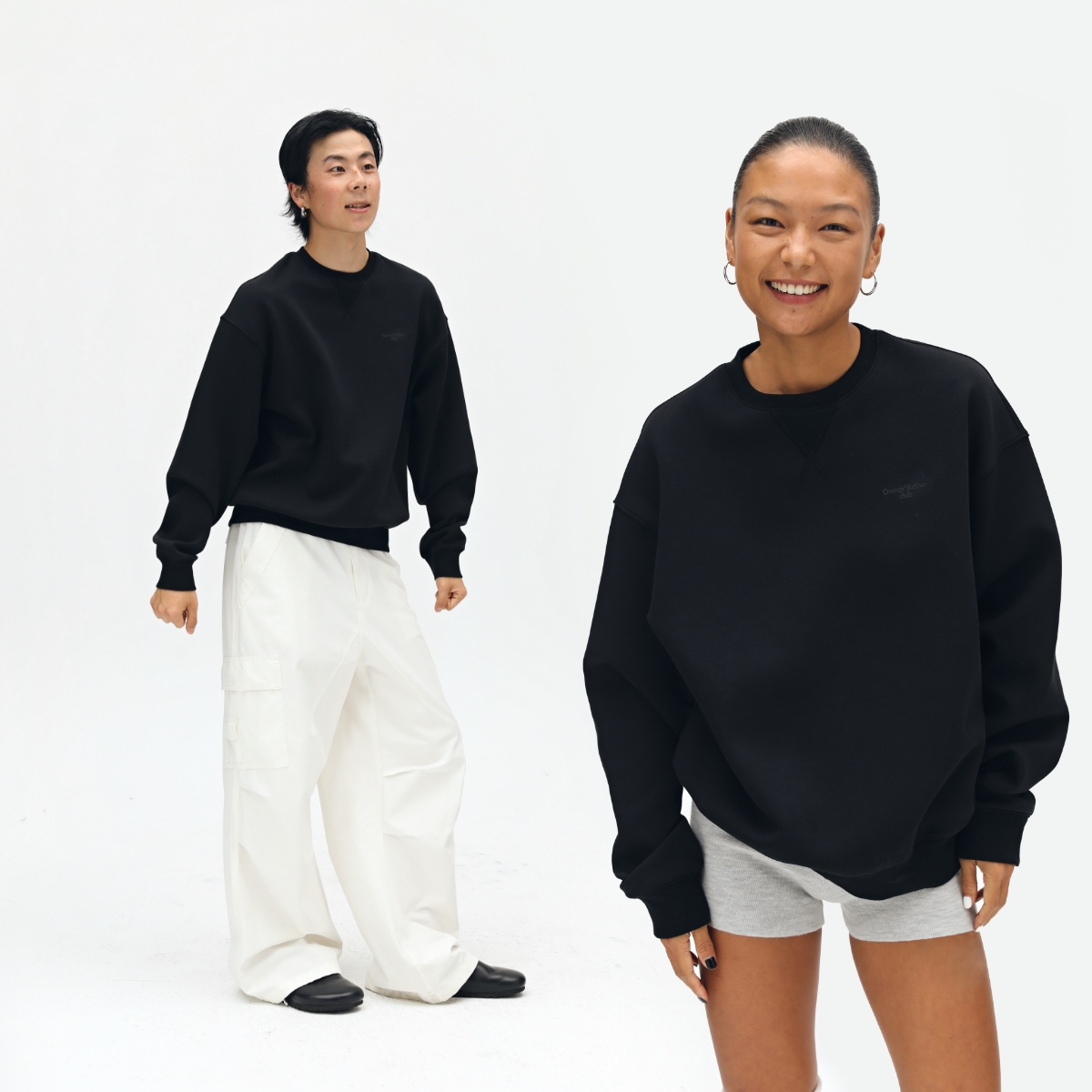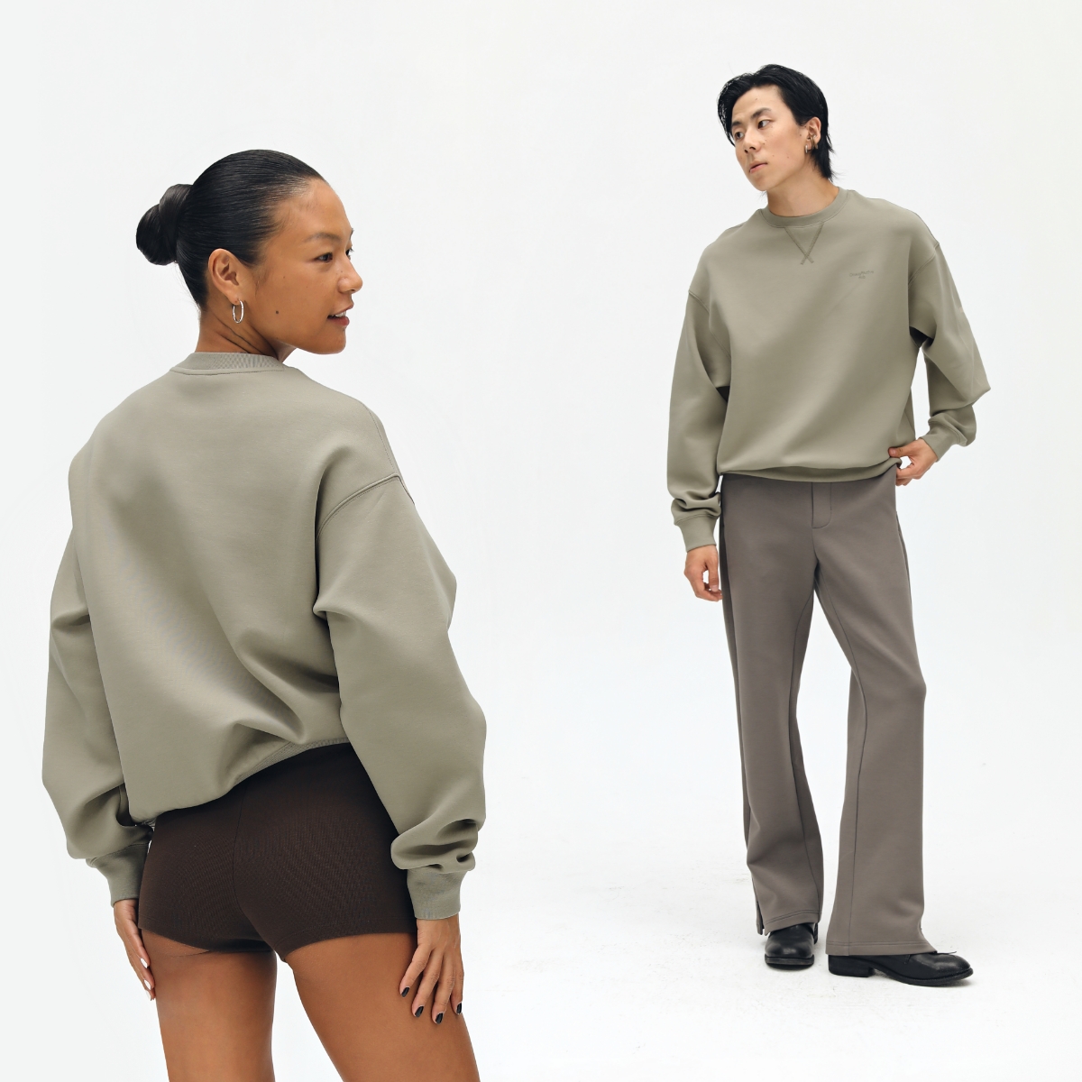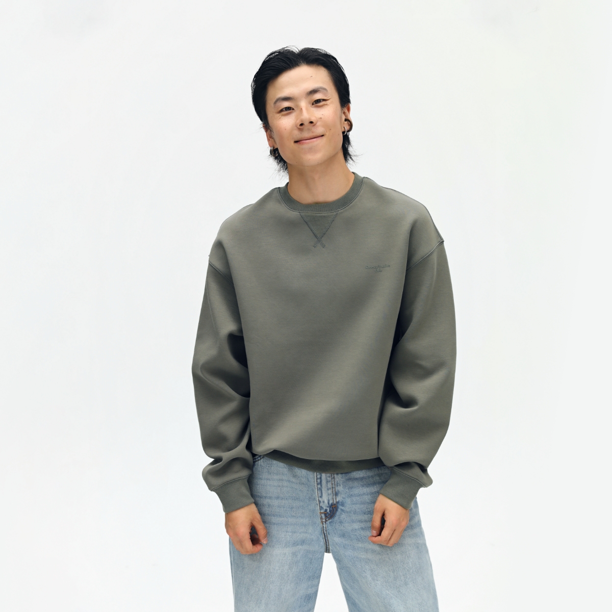 Oneup太空棉空气层圆领卫衣秋冬360g重磅休闲运动宽松灰色长袖 男T