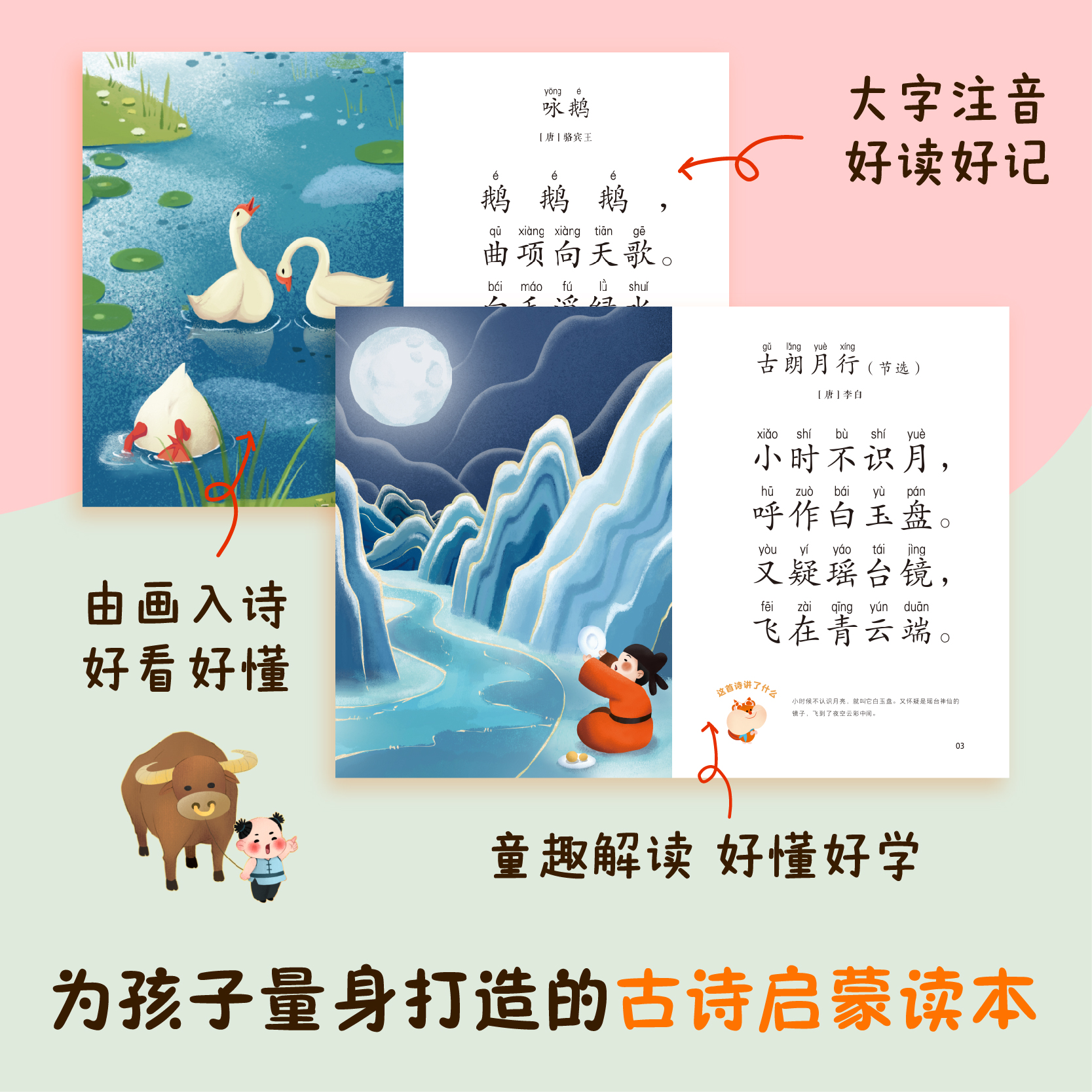 汉字 拼音 儿童纸上纪录片小自然 高效背完幼儿园常学 3岁开始学古诗 波点童趣 40首古诗掌握幼小衔接常用600字少儿启蒙 4册