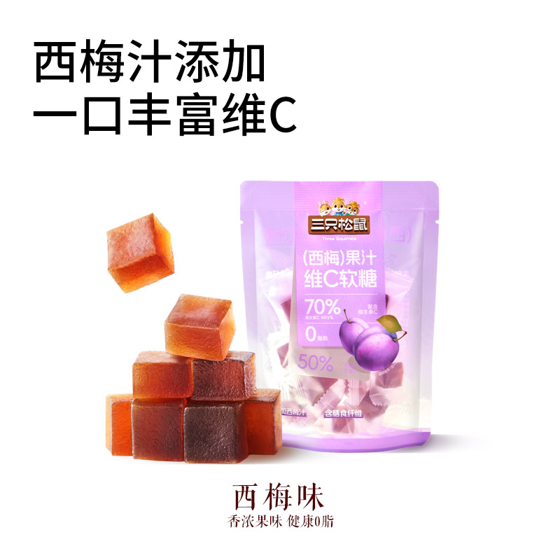 三只松鼠夹心软糖50g_混合水果爆浆西梅酸砂薄荷零食 满99减30