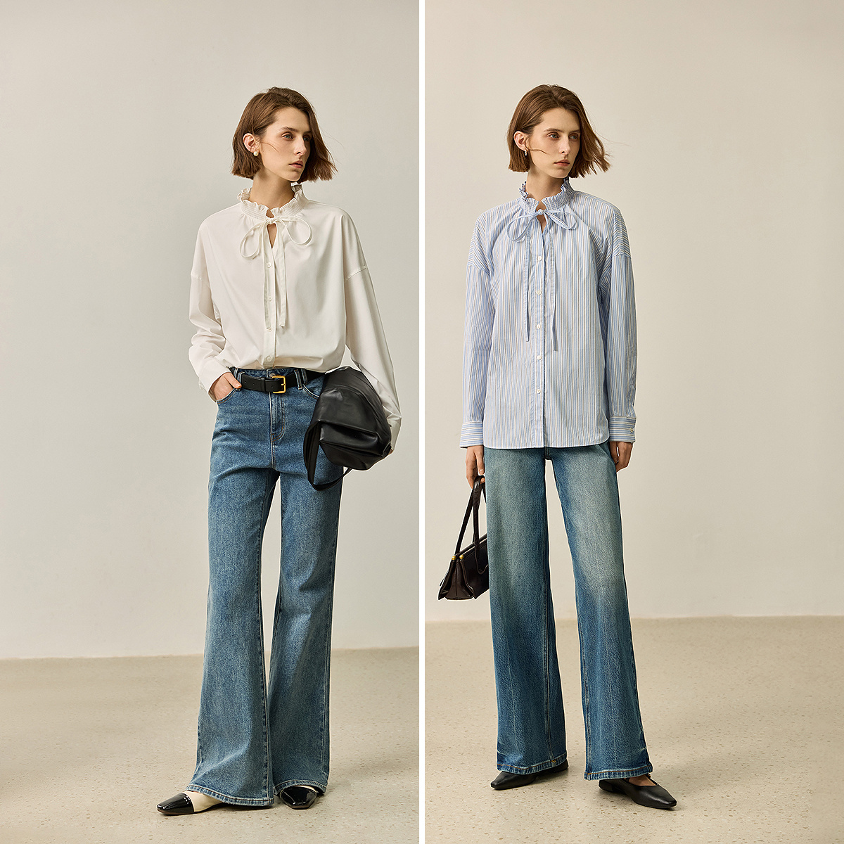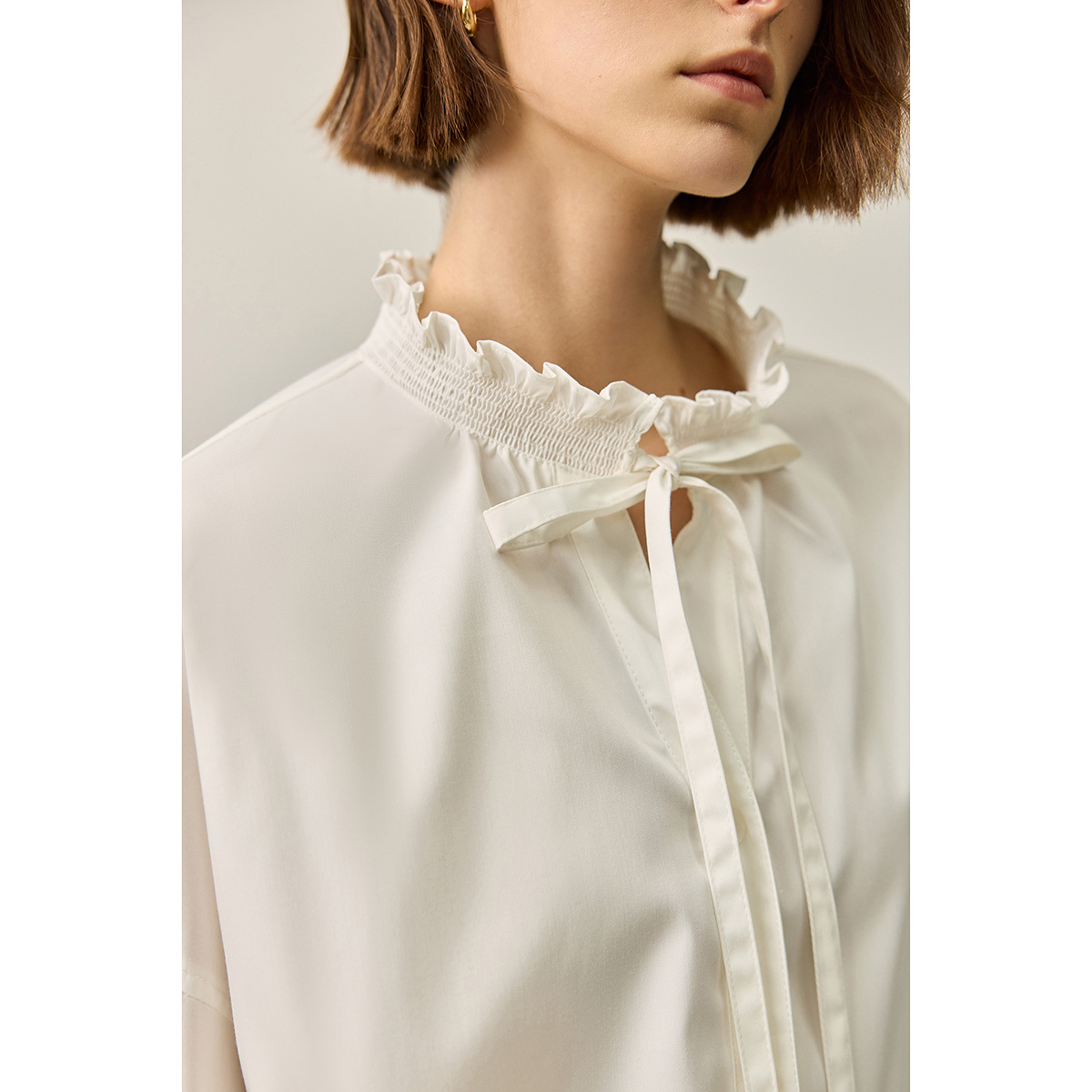 衬衫 LILY新款 优雅拉夫领蝴蝶结飘带棉质通勤长袖 法式 女 女装