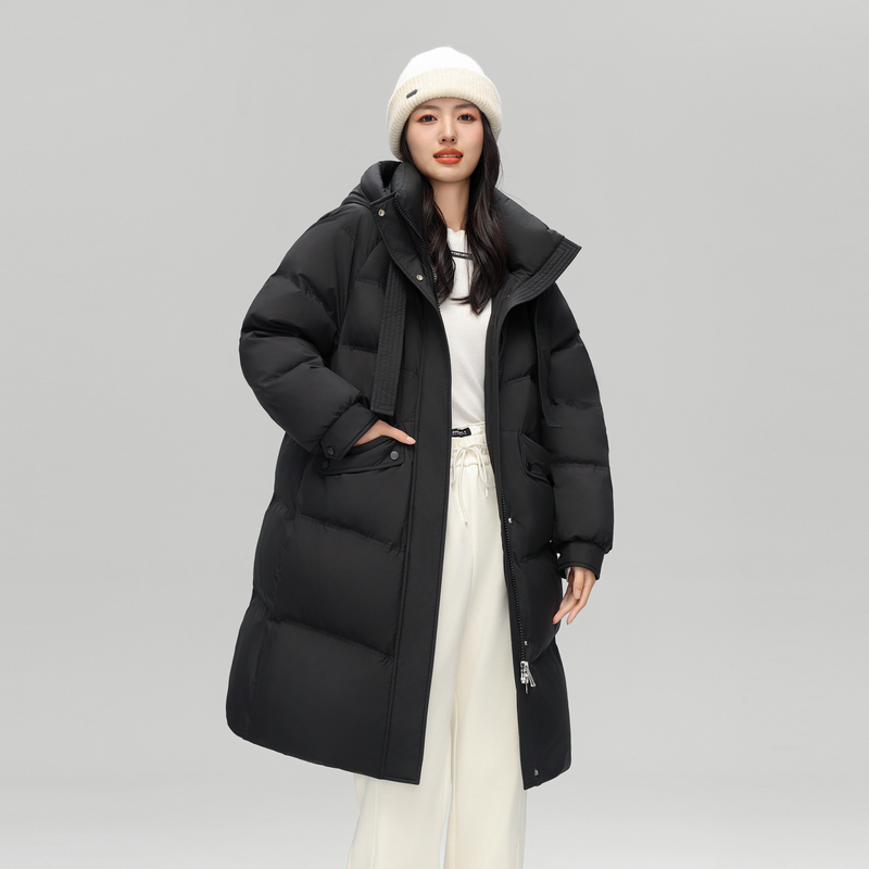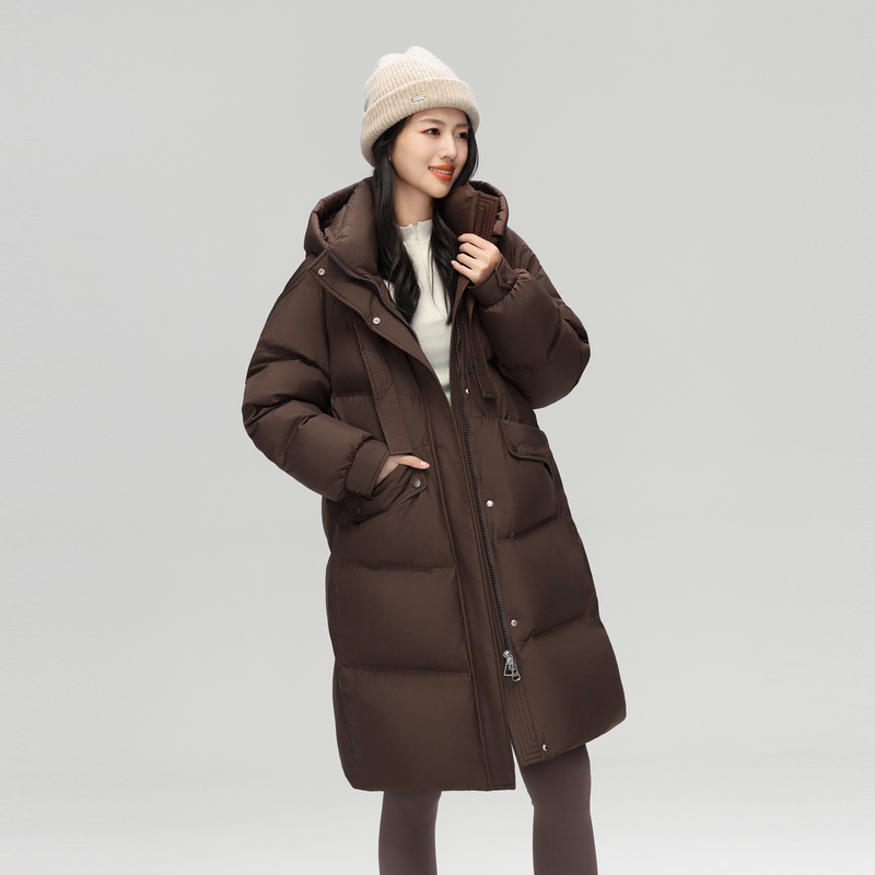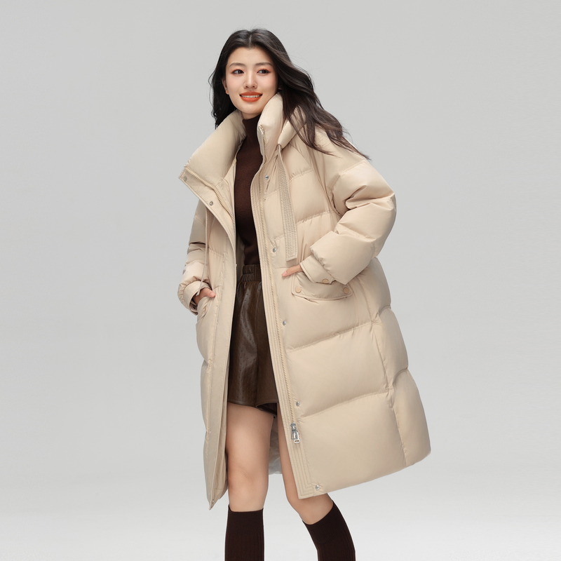 过膝超长宽松纯色加厚保暖鸭绒外套 反季 鸭鸭羽绒服男女中长款 冬季