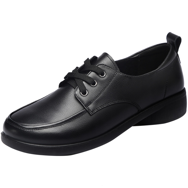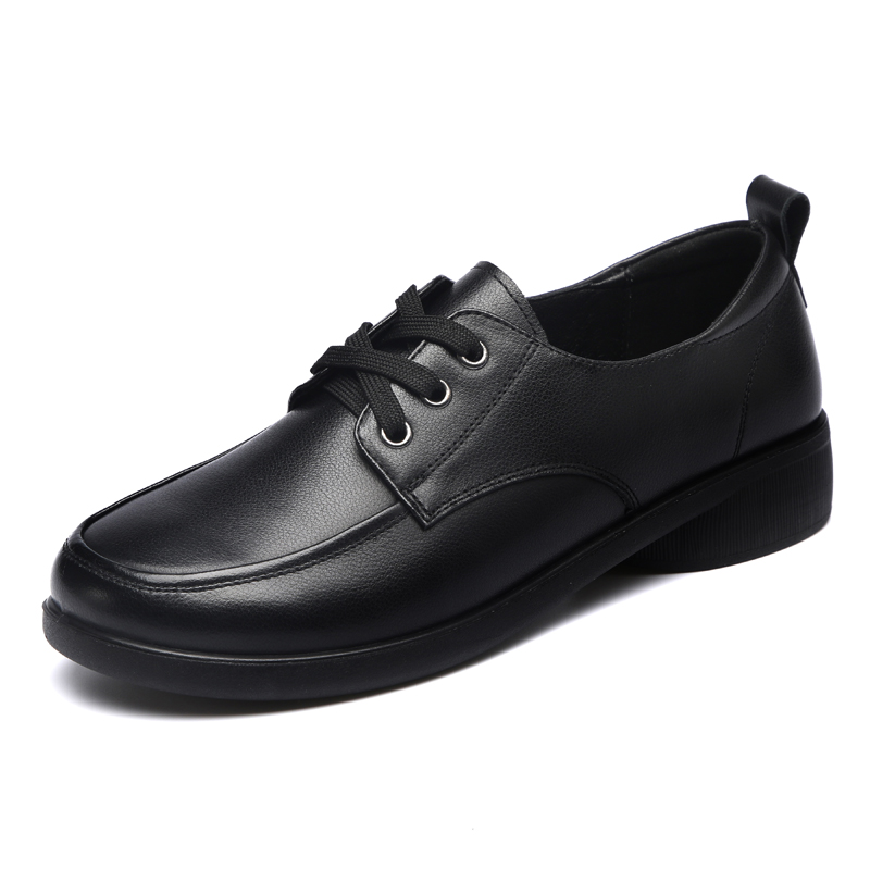 防滑圆头女鞋 中年大码 清仓 女软底系带妈妈单鞋 旺奈真皮英伦风皮鞋