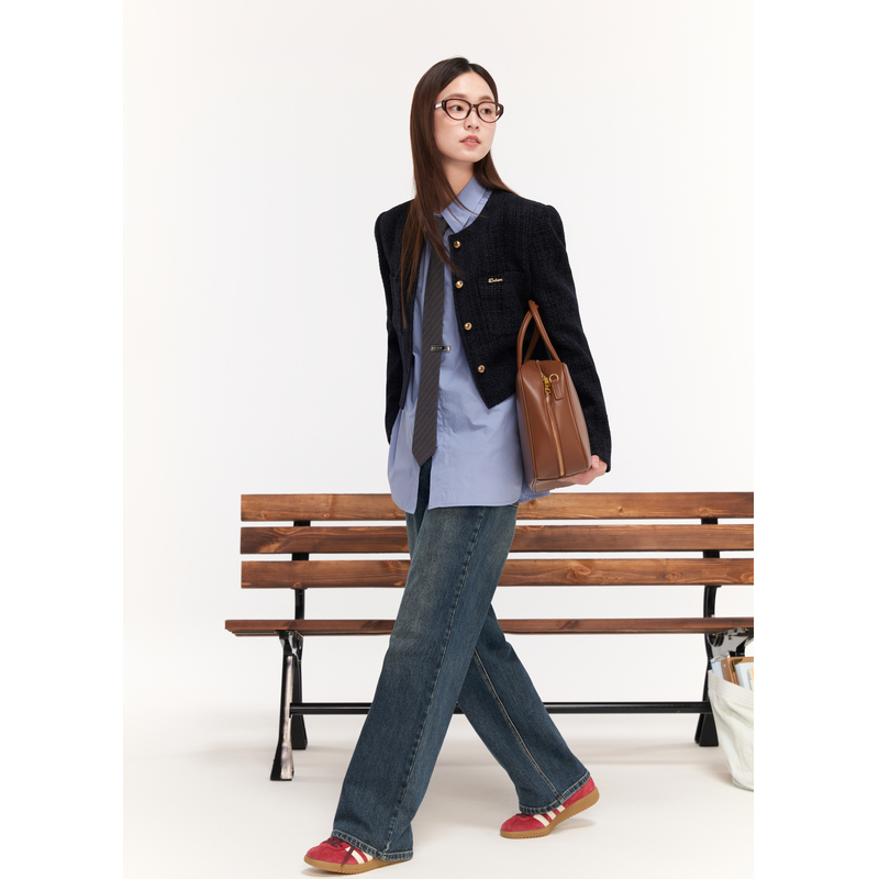 Lilbetter原牛短宽版 外套 哥萨克牛仔夹克2025秋明线设计翻领工装