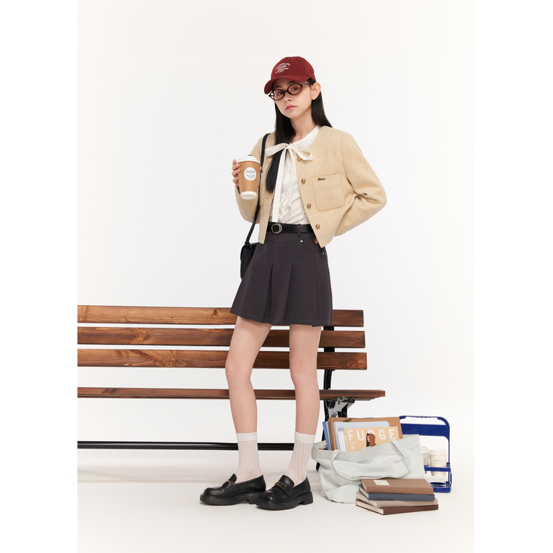 摇粒绒外套小香风上衣千金风气质开衫 女士短款 新款 雪中飞2025秋季