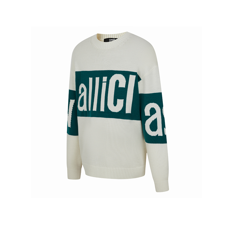 圆领绵羊毛针织衫 长袖 男秋冬新款 CavalliClass卡沃利LOGO提花毛衫