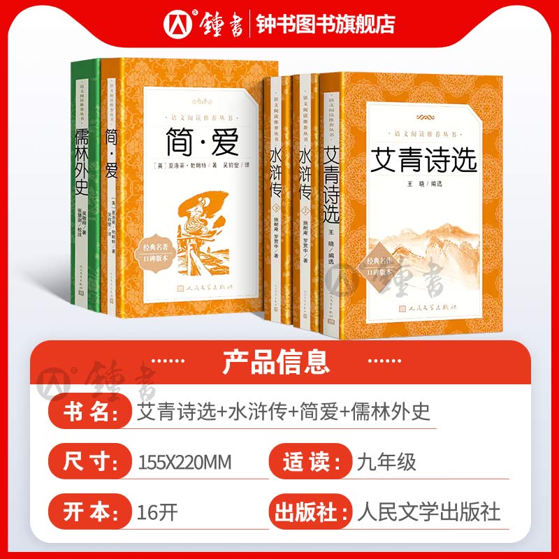 书目初中生阅读书籍唐诗三百首初三九下册语文课外书 原著九年级上册阅读名著完整版 艾青诗选水浒传儒林外史简爱人民文学出版 社正版