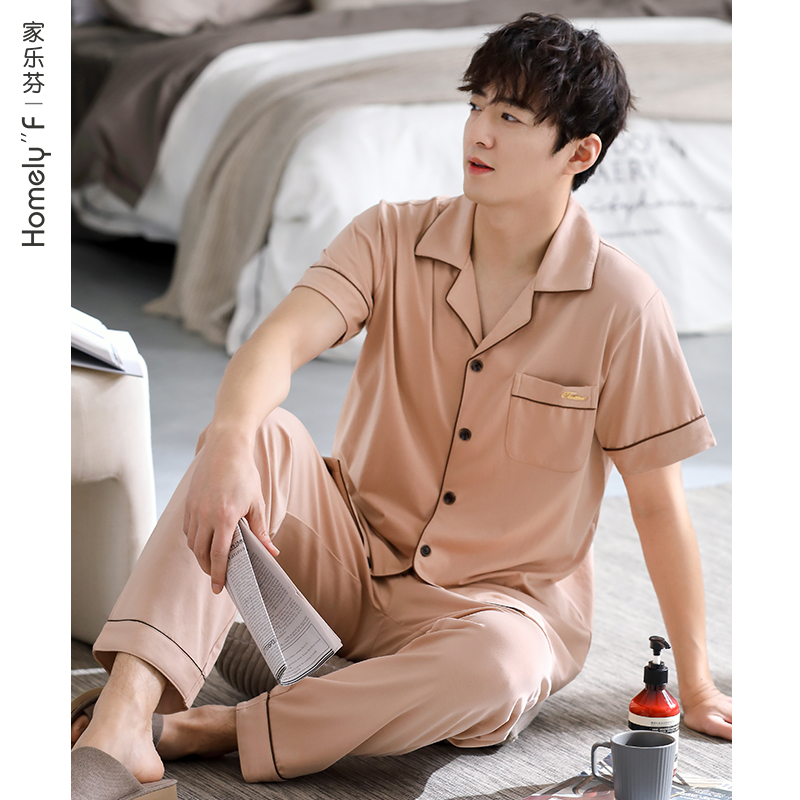 夏季 夏款 夏天短袖 家居服男款 家乐芬睡衣男士 长裤 休闲套装 凉感
