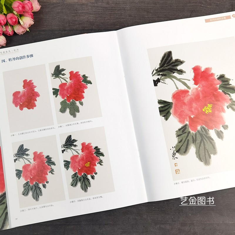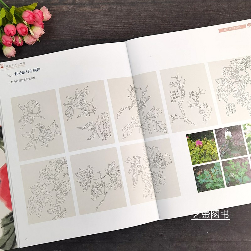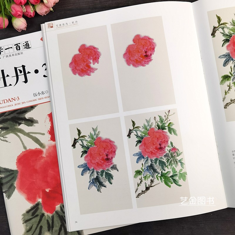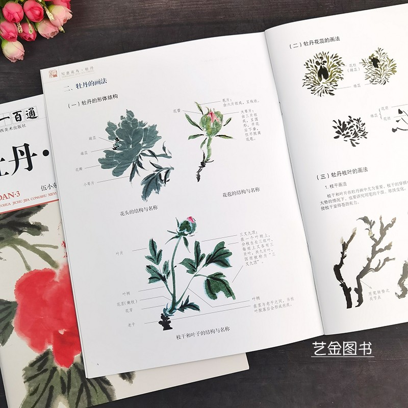 牡丹3 社 学一百通中国画基础技法丛书写意花鸟写意牡丹画法教程水墨花卉画法白描牡丹国画牡丹绘画技法广西美术出版
