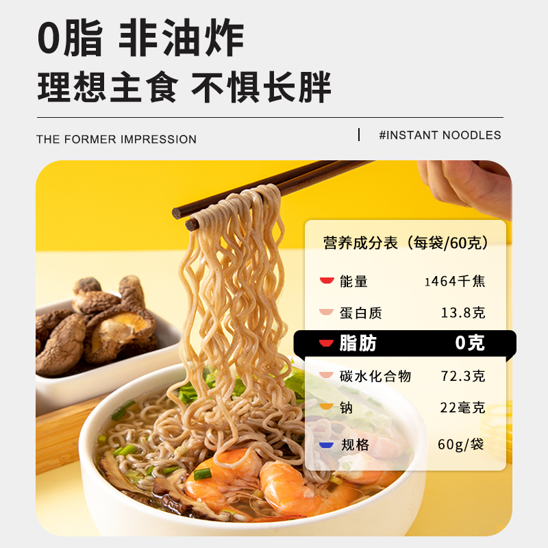 0脂荞麦方便面大份无糖精低盐卡免煮非油炸泡面条代餐饱腹轻食