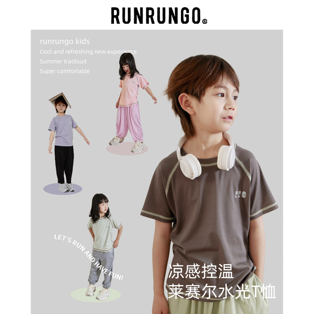 T恤户外春夏休闲运动莱赛尔水光打底衫 儿童长袖 蝉翼 RUNRUNGO