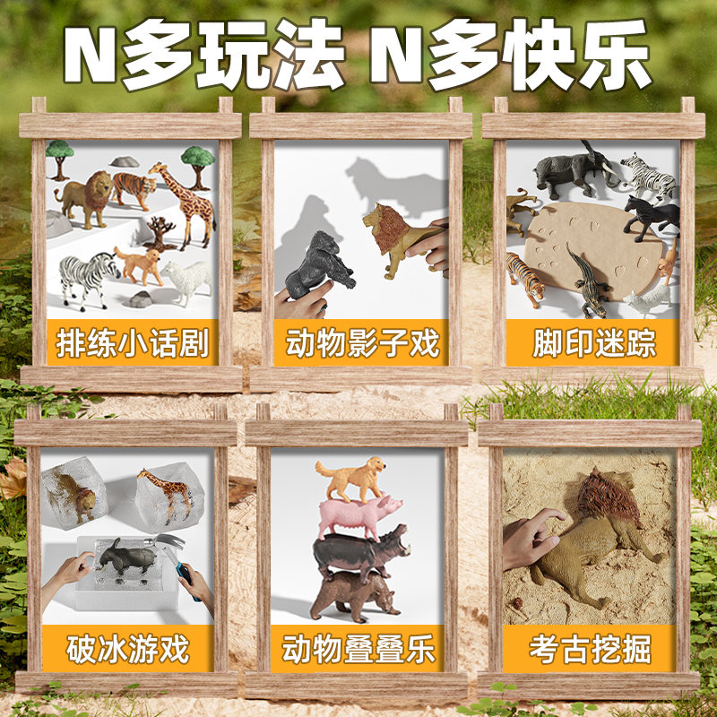 儿童仿真动物模型玩具套装 大象大猩猩老虎狮子河马熊猫农场小动物