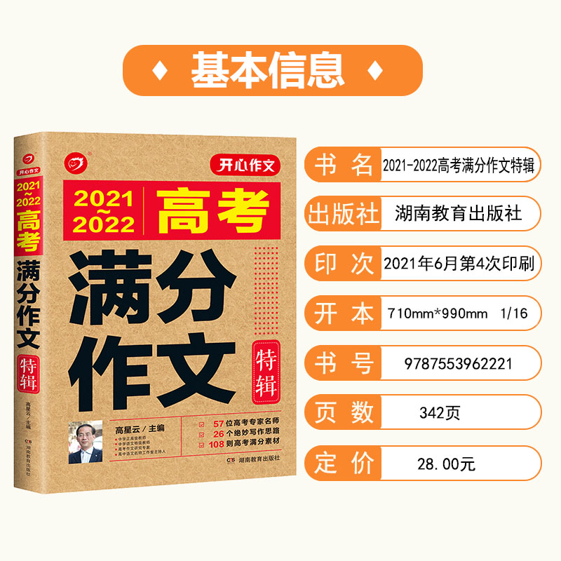 开心作文2021 作文范文备考2022写作辅导材料积累素材运用 2022高考满分作文特辑高中生高一高二高三年级语文通用版
