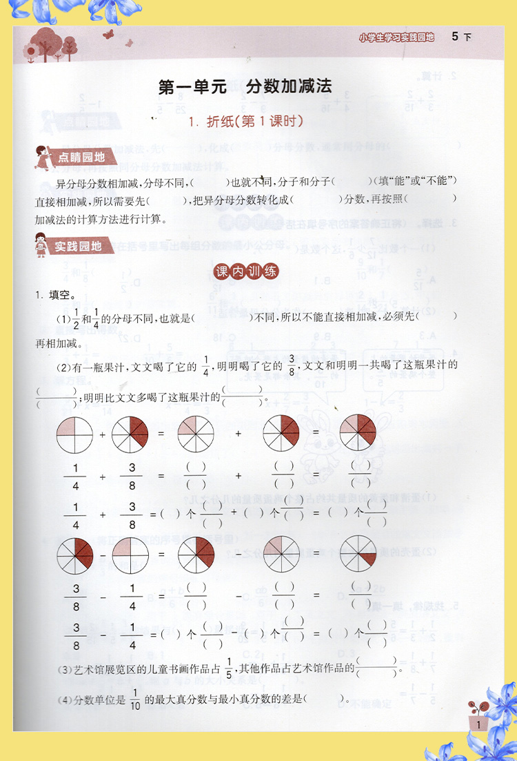 四川教育出版 新 数学五年级下册北师版 2025春 社 北师大版 新课标 五年级下册数学 四川专用 小学生学习实践园地 含答案