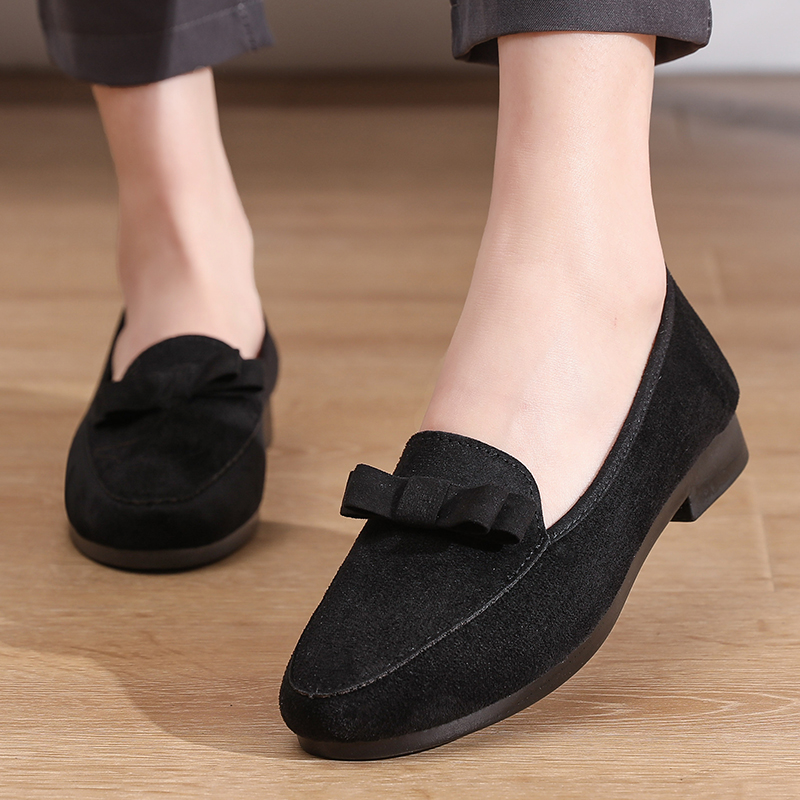黑色平底职业妈妈舒适单鞋 软底春秋上班豆豆鞋 女老北京布鞋 工作鞋