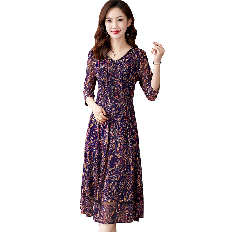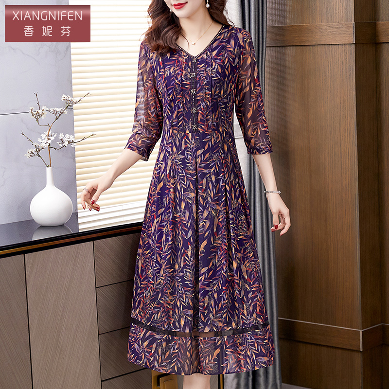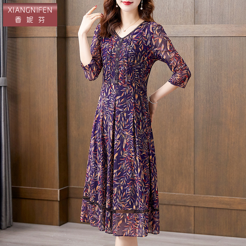 连衣裙女夏季 微胖mm纯欲气质紫色V领长袖 御姐性感短裙 欣争艳 XZY