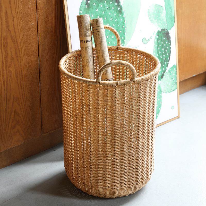 Kens北欧风大号脏衣篮圆形客厅书报字画收纳桶雨伞置物架塑料藤编