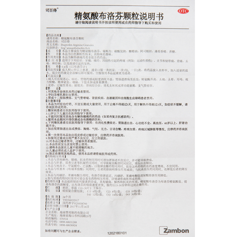 司百得精氨酸布洛芬颗粒 牙痛 0.4g 盒 头痛关节痛zz 12袋 司百得