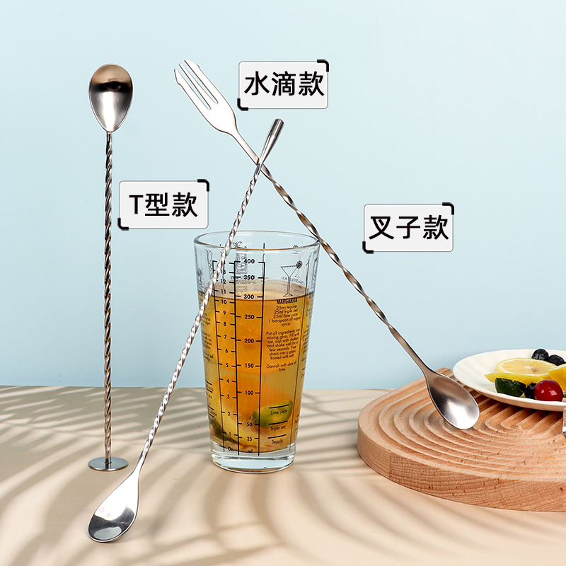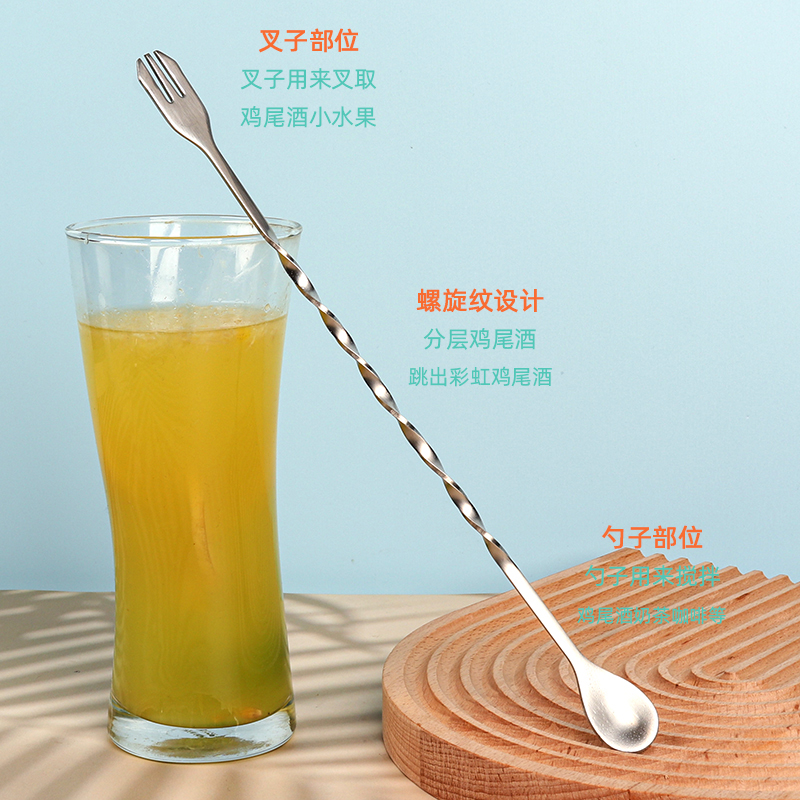304不锈钢吧勺调酒器咖啡搅拌叉奶茶店酒吧长柄螺旋碎冰棒调羹