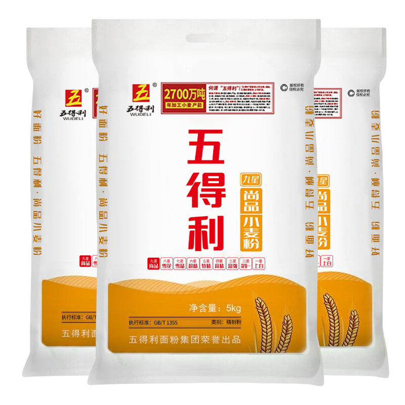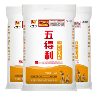 五得利面粉九星尚品5kg 3家用小麦粉包子饺子馒头中筋通用面粉