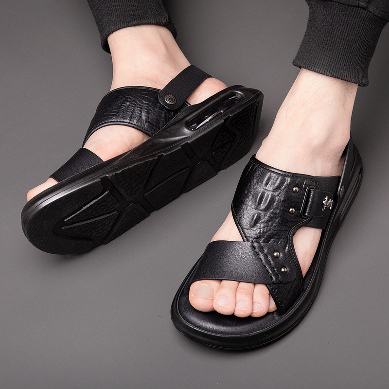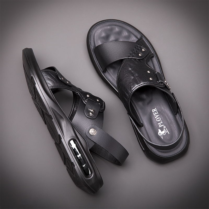 拖鞋 PLOVER牛皮沙滩鞋 软底鳄鱼纹开车男凉鞋 凉拖鞋 两用 男真皮夏季