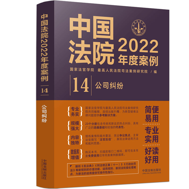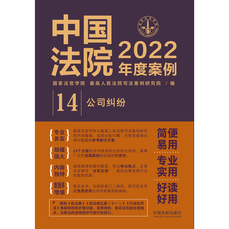 国家法官学院 最高人民法院司法案例研究院 编 现货 社 公司纠纷 法制出版 9787521625134 中国法院2022年度案例14