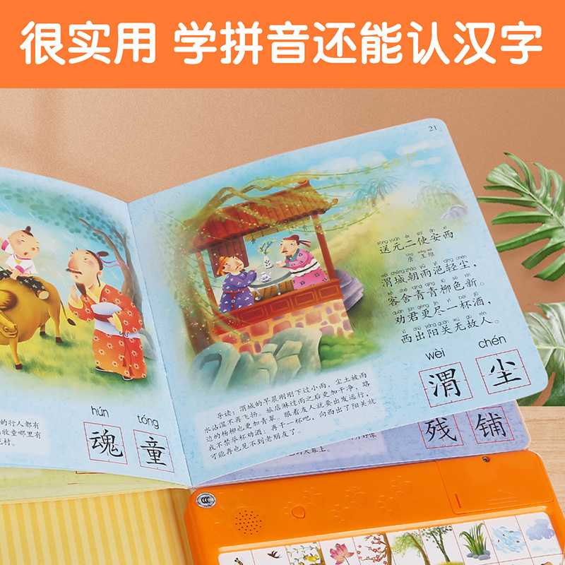 5岁幼儿手指触摸点读有声读物念童谣英文儿歌三字经弟子规唐诗注音版 早教书 乐乐趣 宝宝国学启蒙会说话 发声书我会读古诗1