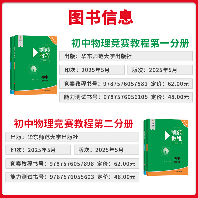 初中八九年级物理竞赛刷题物理奥赛培优奥林匹克竞赛辅导资料书 能力测试第一分册第二分册全套4册第七版 2025新版 初中物理竞赛教程