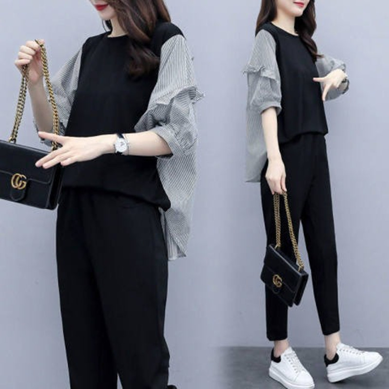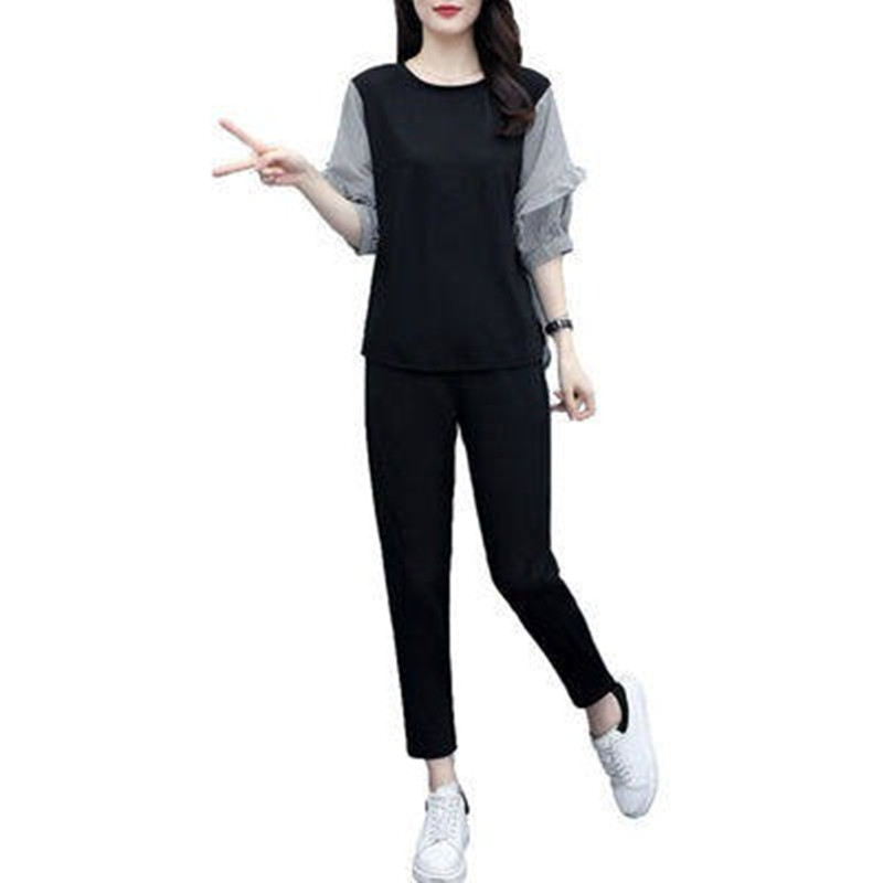 新款 女2025年夏季 大码 女装 运动服气质两件套 休闲时尚 宽松短袖 套装