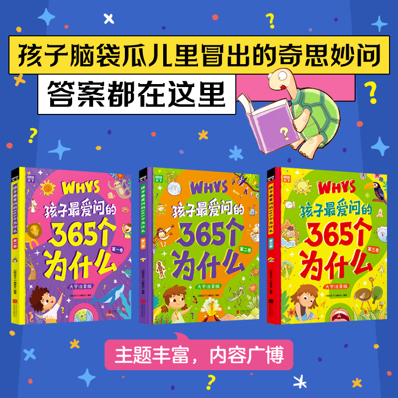 儿童绘本科普百科全书启蒙读物小学生一二三年级漫画书籍带拼音正版 彩绘注音版 365个为什么全套3册十万个为什么幼儿版 孩子最爱问