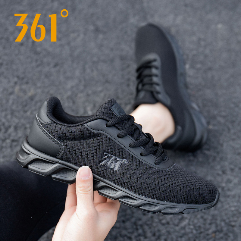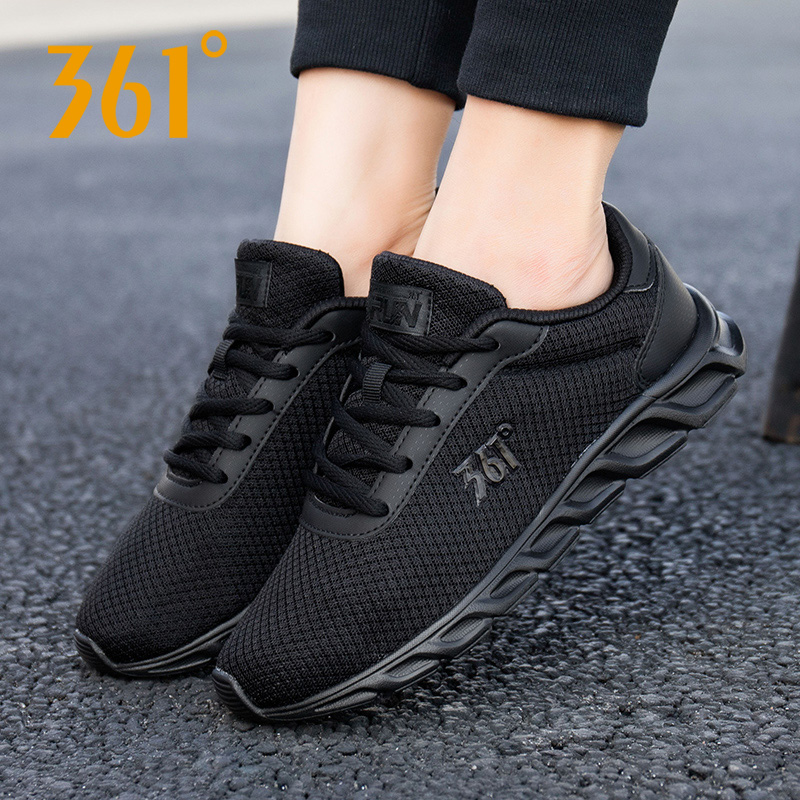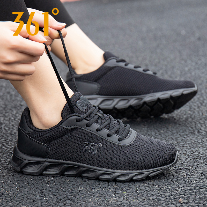 361度官方旗舰店女鞋 361运动鞋 黑色透气网面跑步鞋 全黑网鞋 女冬季