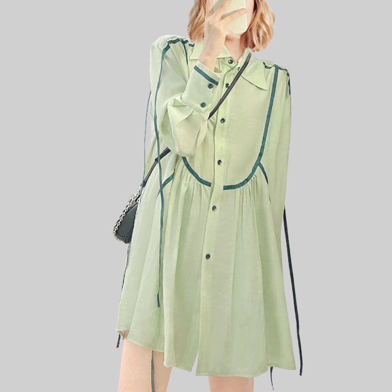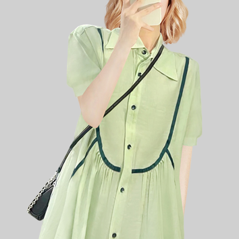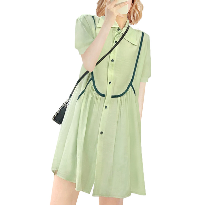 连衣裙夏女收腰X版 秋水伊人断码 式 翻领衬衫 显瘦裙子 清仓时尚